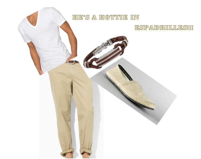 Espadrilles aren’t just for the beach or a smooth sail on a yacht. It’s o.k. to sip a glass of prosecco on a warm summer day on the central park lawn, but a night at the cinema or a trip to the coffee shop is an ideal opportunity to slip-on a pair of espadrilles. I love to see a man wearing his espadrilles with a slightly wrinkled pair of cargo shorts. A striped, nautical style shirt goes well with his espadrilles. But I prefer a simple, white V-neck and slim fit khaki colored chino – cuffed at the foot. Accessorize with a beautiful, braided, leather bracelet. The bracelet adds an organic touch to an already soft, earthy trend.