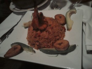 For dinner I had arroz criollo – topped with a grilled shrimp. Surrounding the plate were sweet plantains and avocado. For dessert I had a mango mousse cake, which was heavenly; divine. The girls enjoyed cups of coffee as we discussed dating, marriage, and the desire to remain single.