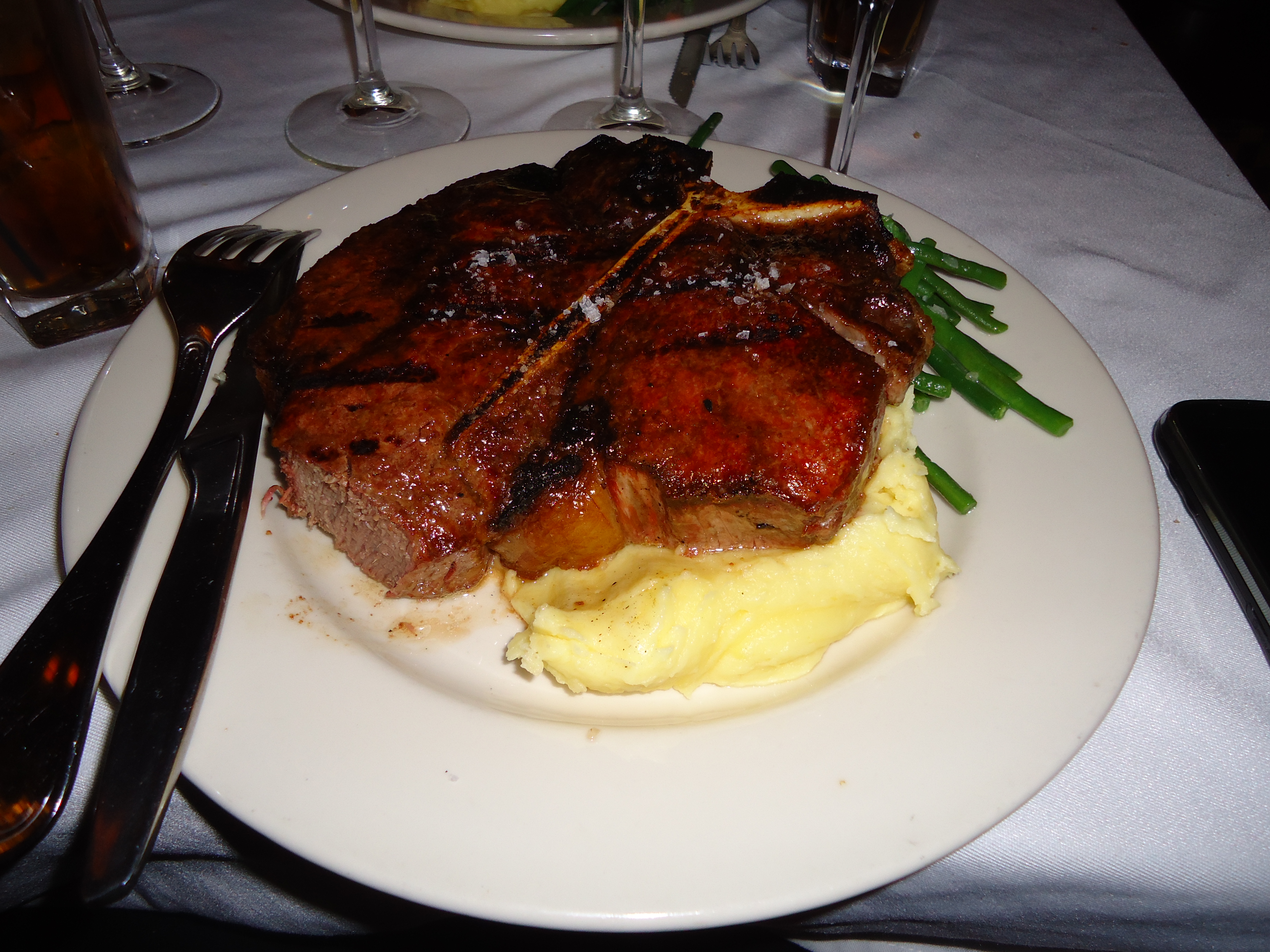 T-Bone Steak, Mashed Yukon Gold Potatoes, and Fine String Beans