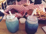 For dinner we had spicy wings; North River Pat La Frieda Burger -Beef, Applewood Bacon, Caramelized Onions, Gruyère on a Toasted Brioche with Hand Cut Fries with a side of Garlic Aioli; and a Shrimp Po’Boy. We tasted 2 of their specialty cocktails both served in glass mugs with the company’s name and logo on it.