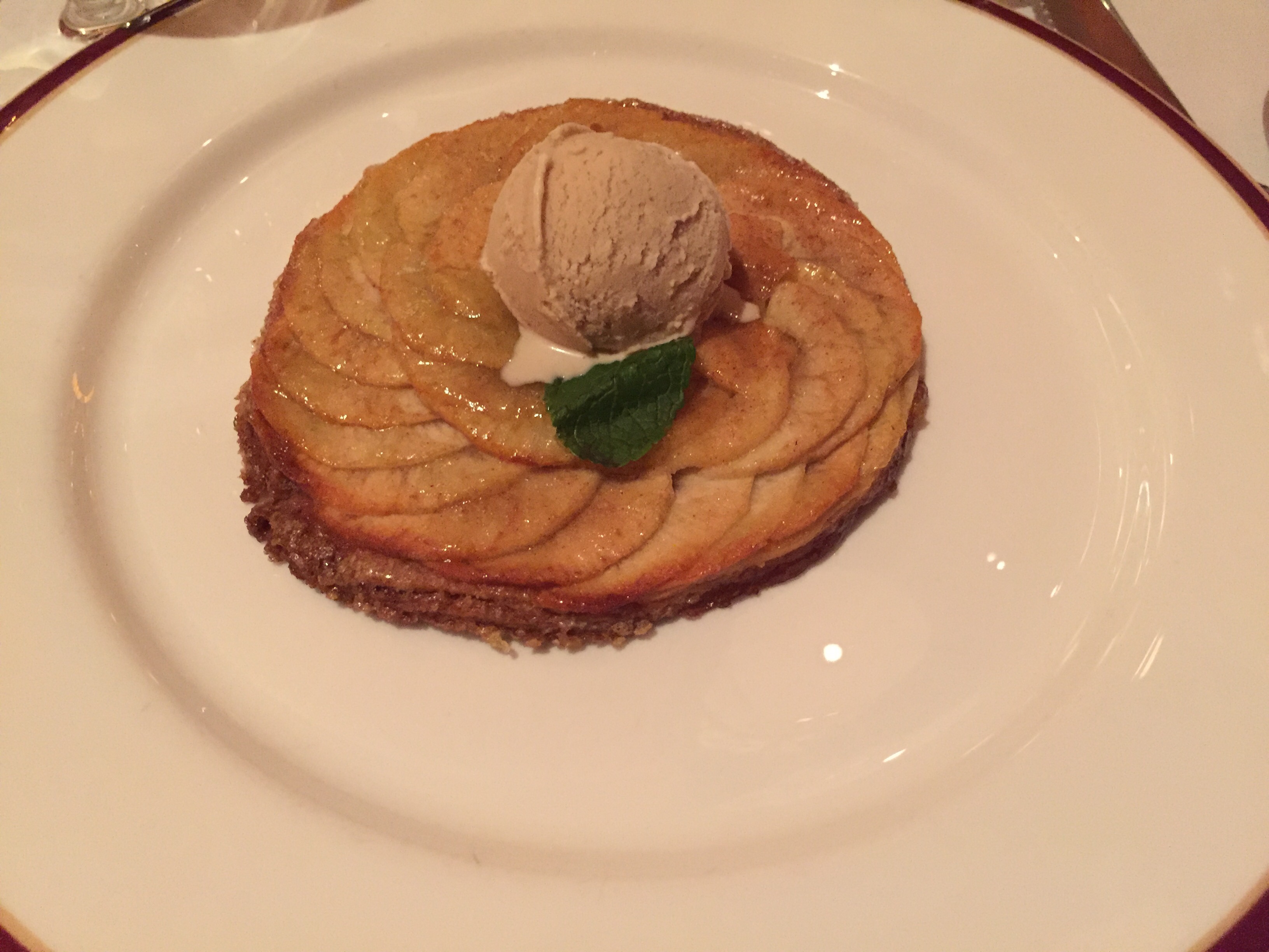 For dessert I had an apple tart with cinnamon ice cream. The tart’s crust was like hard candy. I couldn’t cut it with a fork and knife. The cinnamon ice cream is really good; rich and creamy, not too sweet with the perfect touch of cinnamon flavor. The apple tart just didn’t work for me, specifically because of the tart’s inedible crust. It looks like they removed this dessert from their menu since my last visit to the restaurant.
