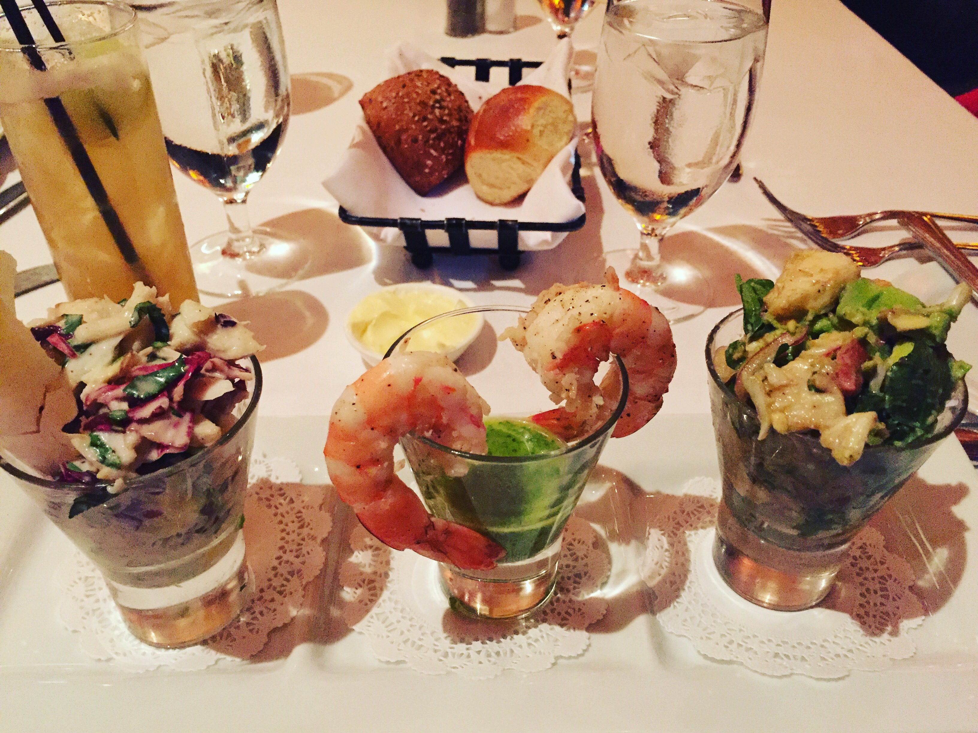 I mostly enjoyed their dark and stormy cocktail customarily served in a copper mug. I had their version in a tall, slim glass. I did the tasting of all three seafood cocktails, which included the Shrimp-Tomatillo, Crab-Coconut, and Lobster-Avocado. I wrote about the power of plating in a previous post. At Bar Americain, the food looks better than it taste. The seafood cocktails are beautiful. It is art on a plate, but when you taste it, it doesn’t quite hit the mark. The chefs at Bar Americain need to be as innovative with the preparing of the food as they are with the plating.