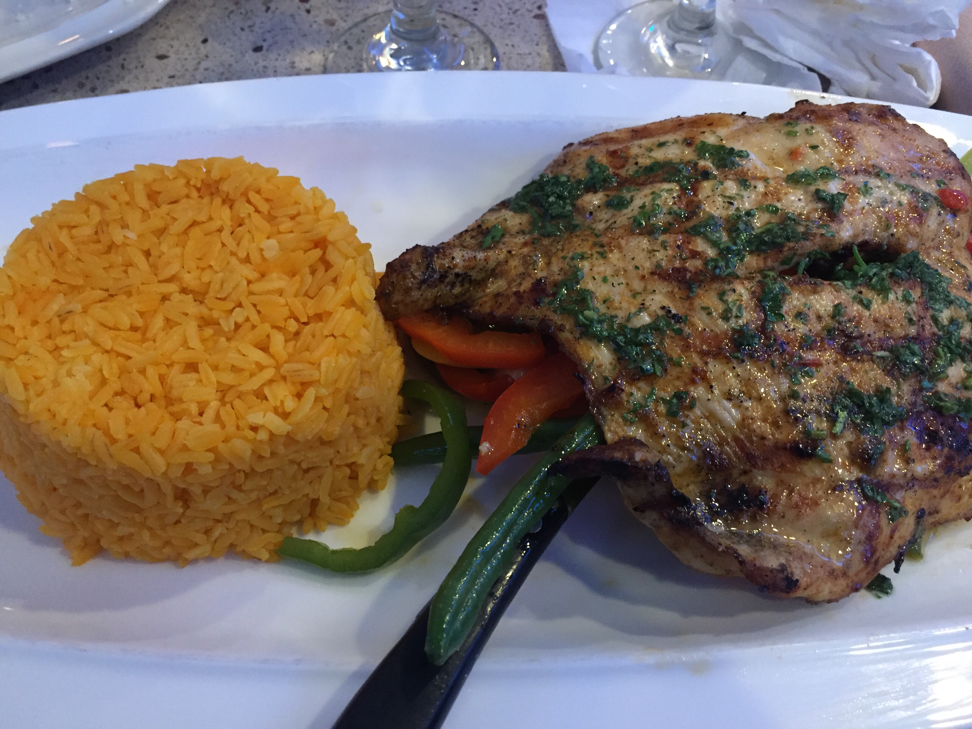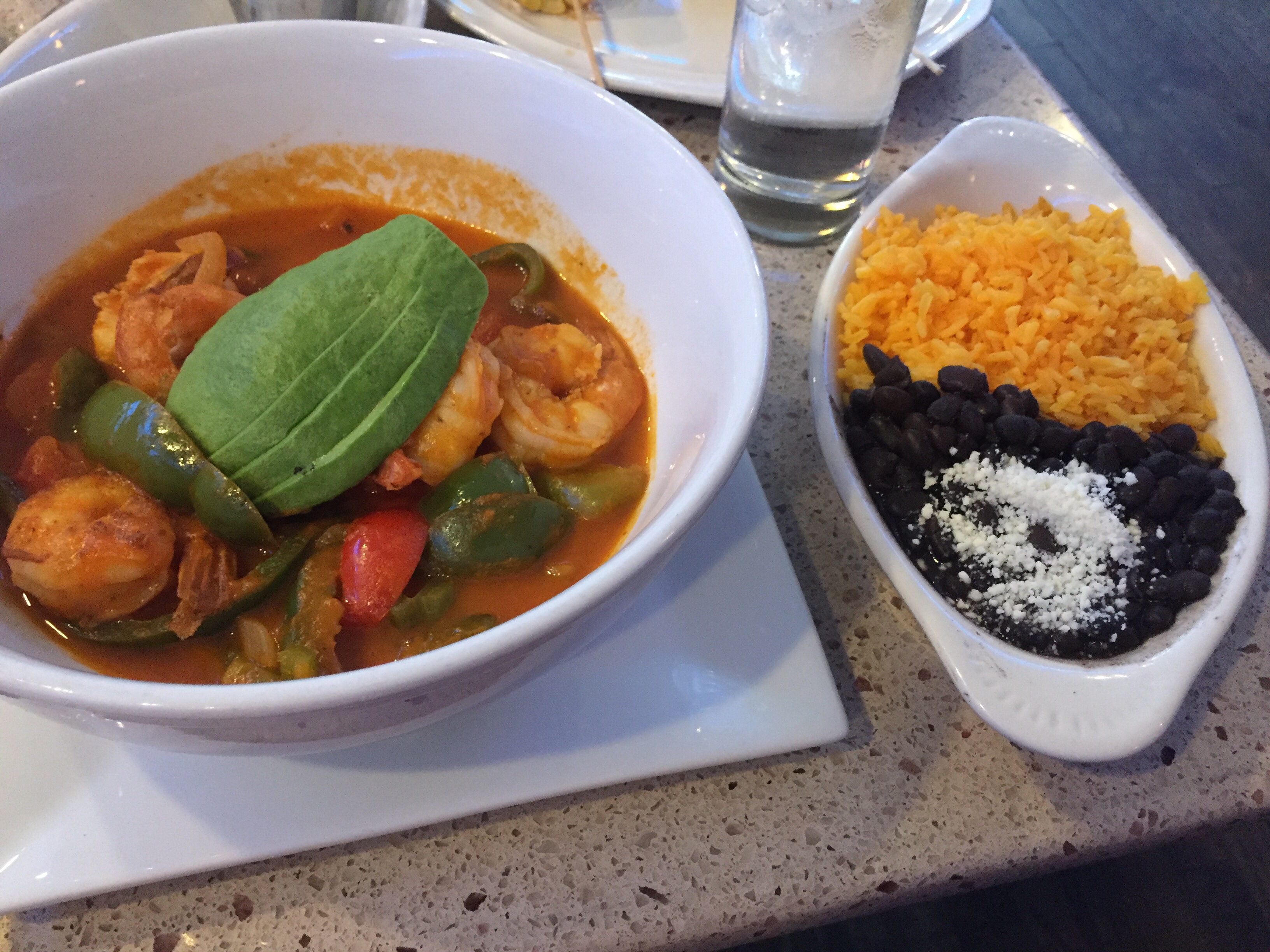 For dinner, we had Camarones a la Diablo – jumbo gulf shrimp, sweet plantain, fresh avocado with a spicy chipotle enchilada sauce, and Mexican rice. We also had the Pollo a la Plancha – grilled chicken breast, charred vegetables, Mexican rice, black beans, and chimichurri sauce. I loved the abundance of flavors in each dish.