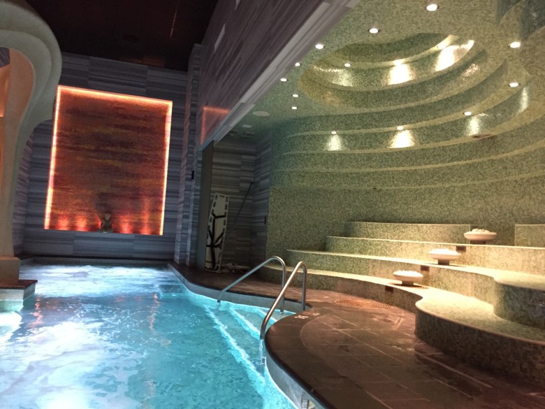 It’s $55.00 for an all access resort guest day pass. It’s $70.00 for a non-resort guest day pass. The day pass includes access to a variety of amenities including heated pools, hot tubs, jaccuzis, salt room, and steam rooms. The amenities are included with a purchase of their spa services or as I stated above, a day pass for guest staying at Ocean Casino and Resort without spa services is $55.00 per person and it allows you a full day experience at the indulgent bathhouse. You can come and go as you please until the end of the day with your day pass. So plan ahead and take advantage of the facilities.