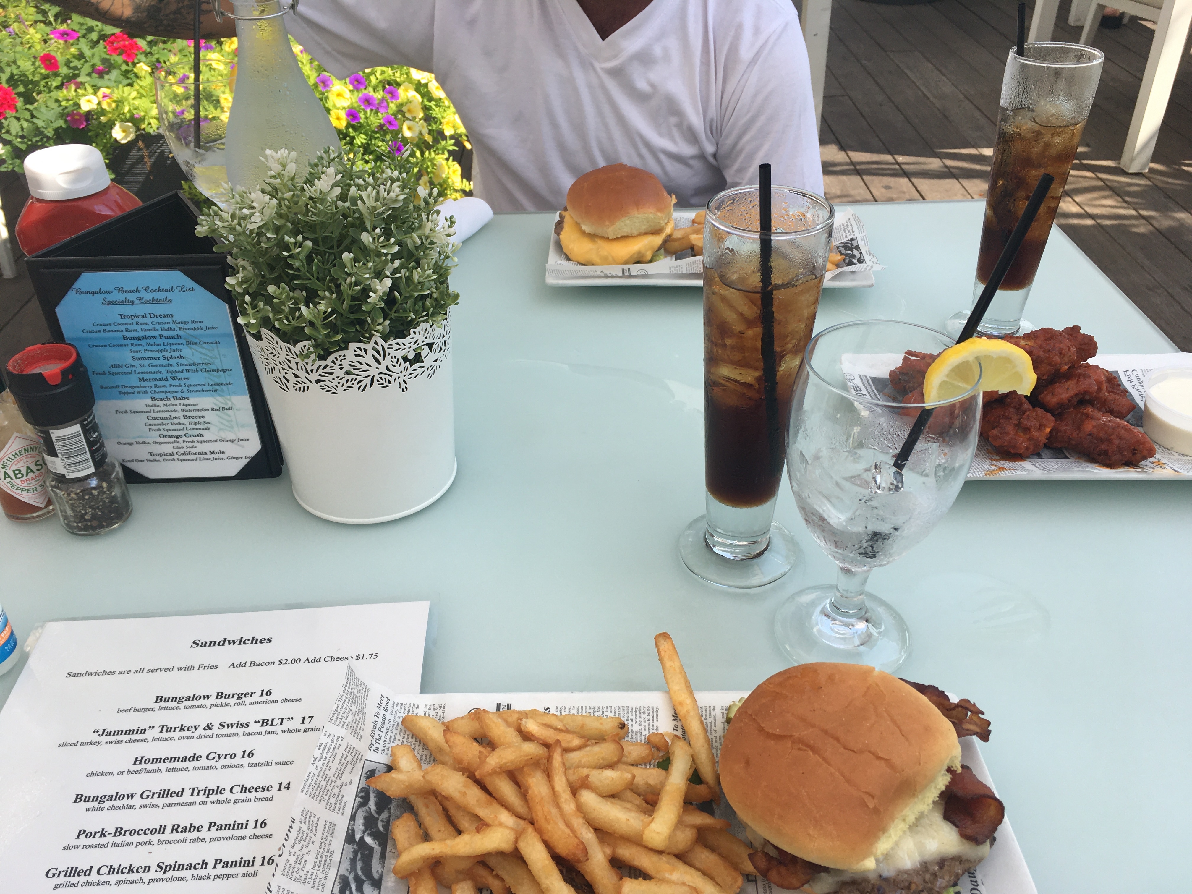 With regards to our food, the burger tasted flame broiled. It had a grilled taste, but more like a grilled with lighter fluid taste. The burger was a burger. It wasn’t the best burger I ever had and it surely wasn’t the worst. It was something to eat on a beautiful, sunny day on the boardwalk. You can’t go wrong with a tall glass of coke on the rocks. The drink was so refreshing and probably the best thing I had at the restaurant.